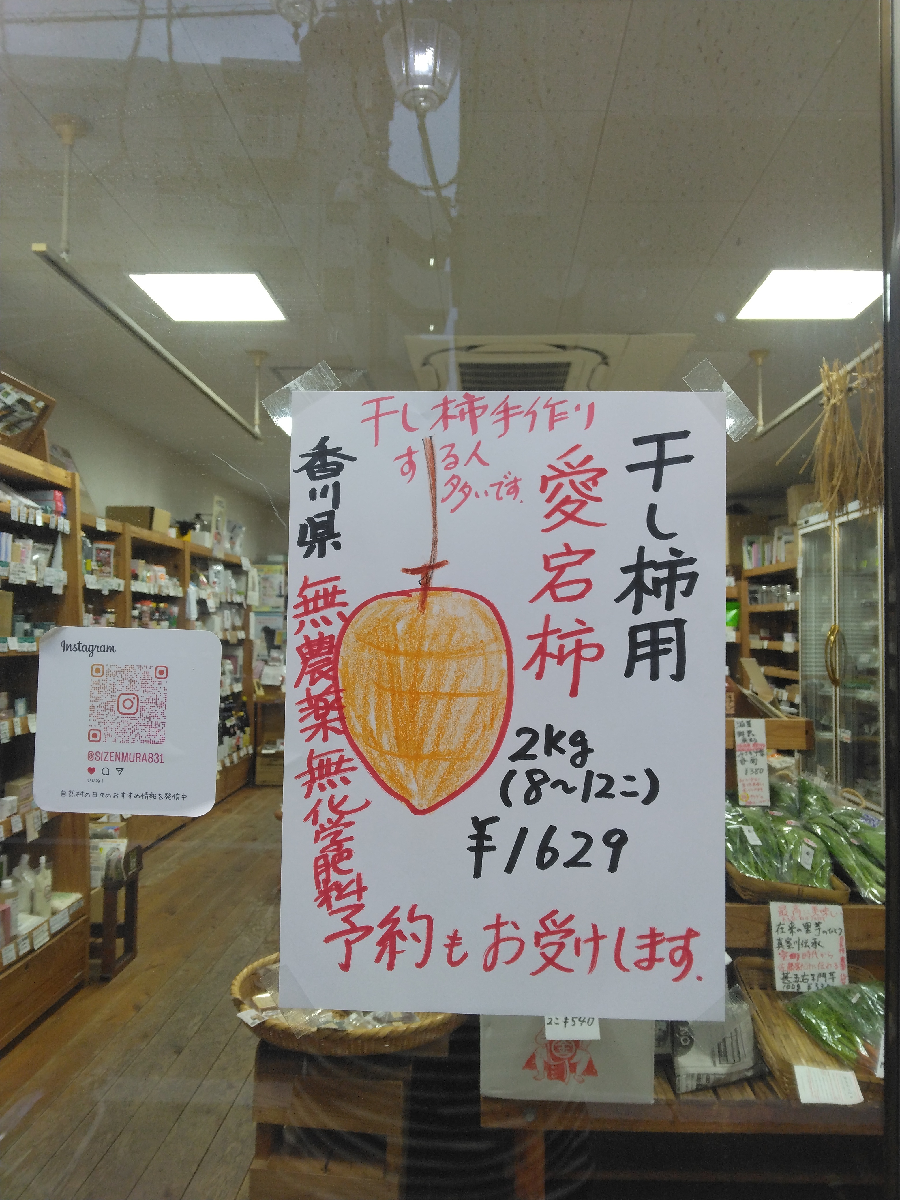 本日入荷の無農薬無化学肥料栽培 愛宕柿です。