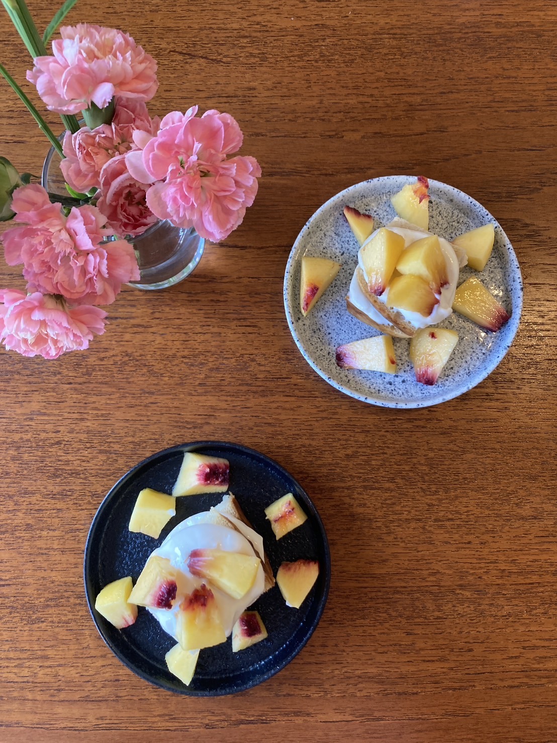 「米粉のスポンジに、水切りした豆乳ヨーグルトをホイップ代わりに重ねて、桃を贅沢にトッピングしました。