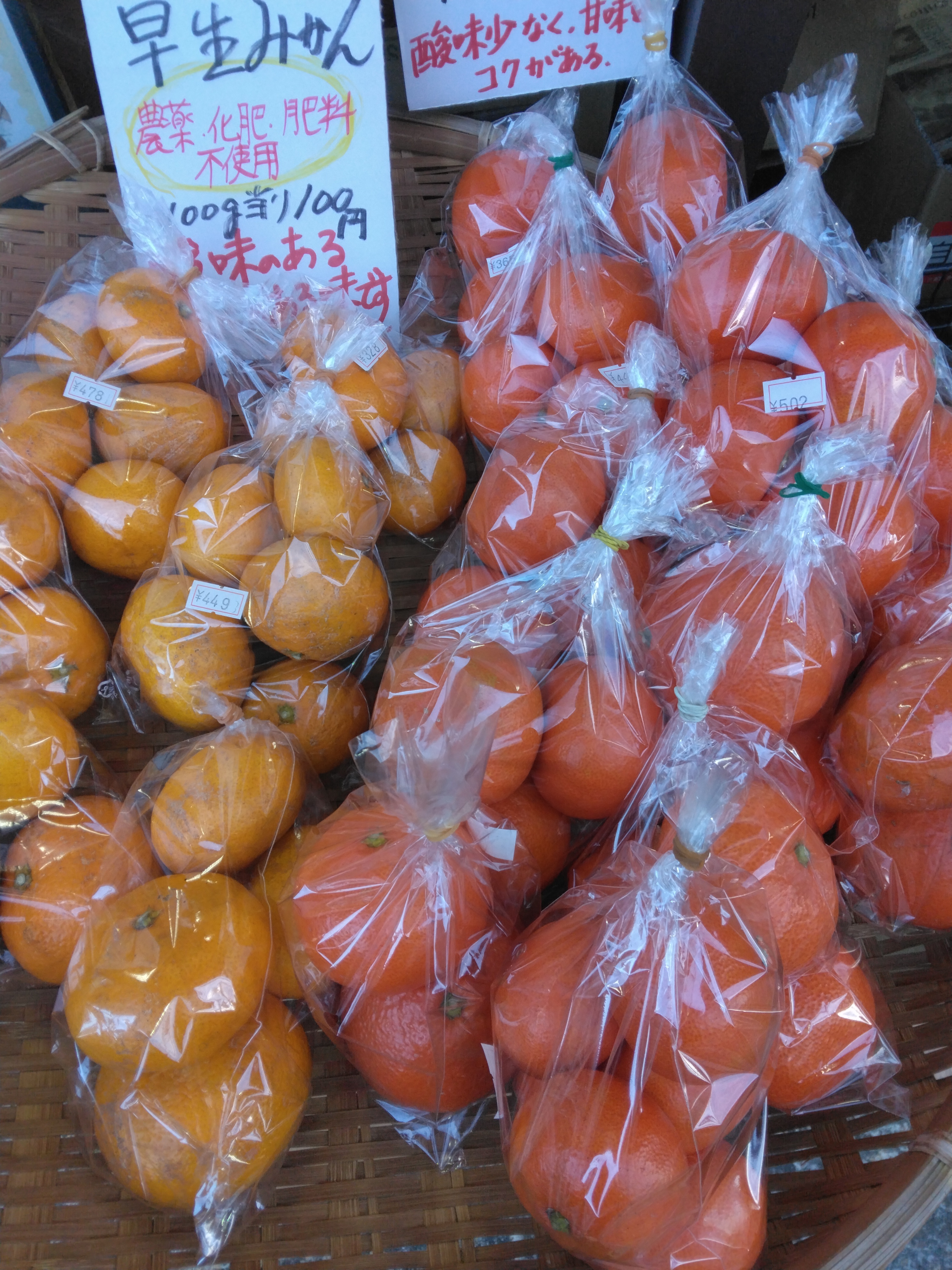 無農薬無化学肥料栽培、自然農法、自然農の3か所の蜜柑が