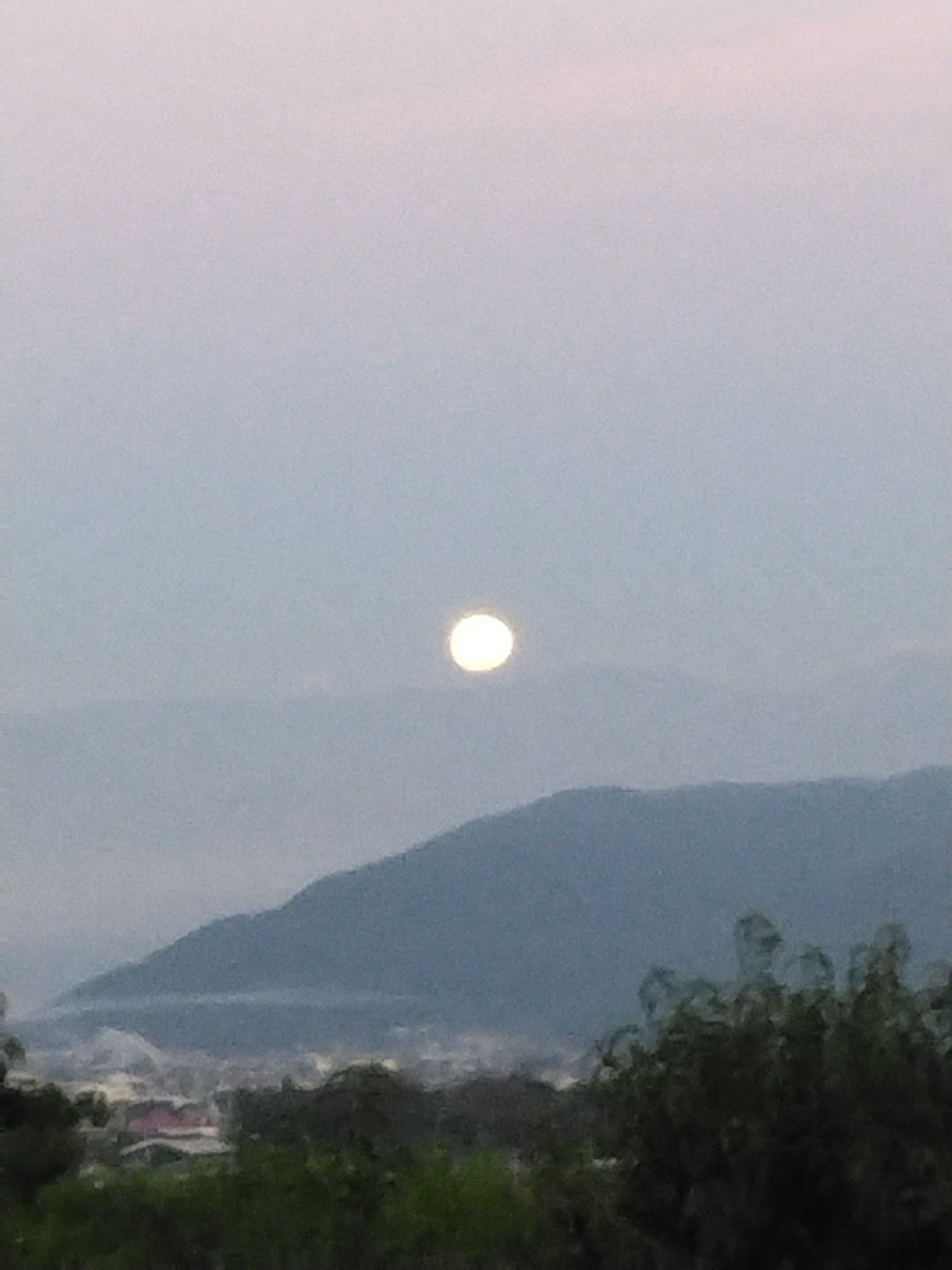 今朝、勝沼インターに向かう途中の空に黄色く輝く大きな月を見ました。