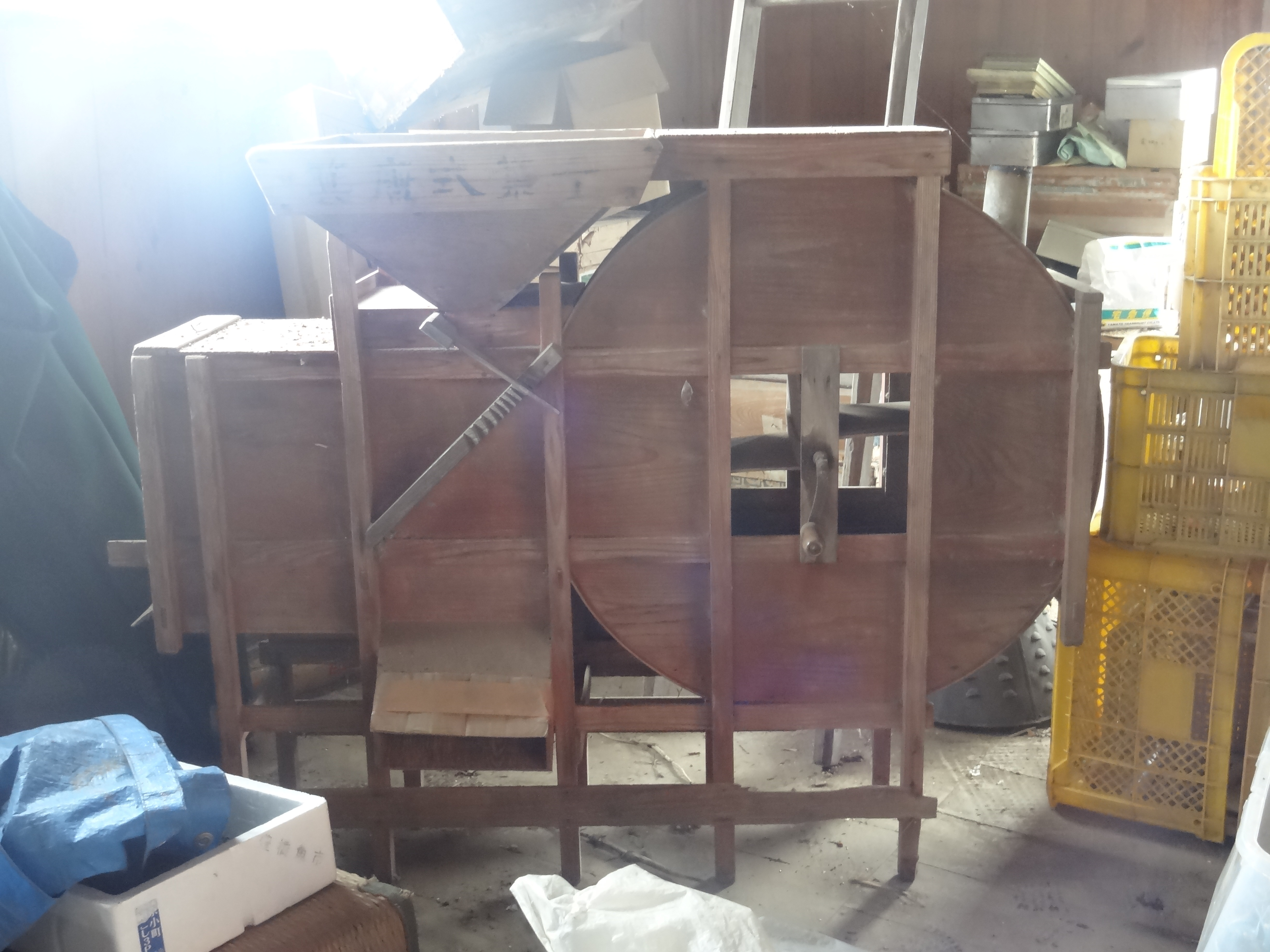 現役です。籾摺り機です。風力で籾を飛ばします。