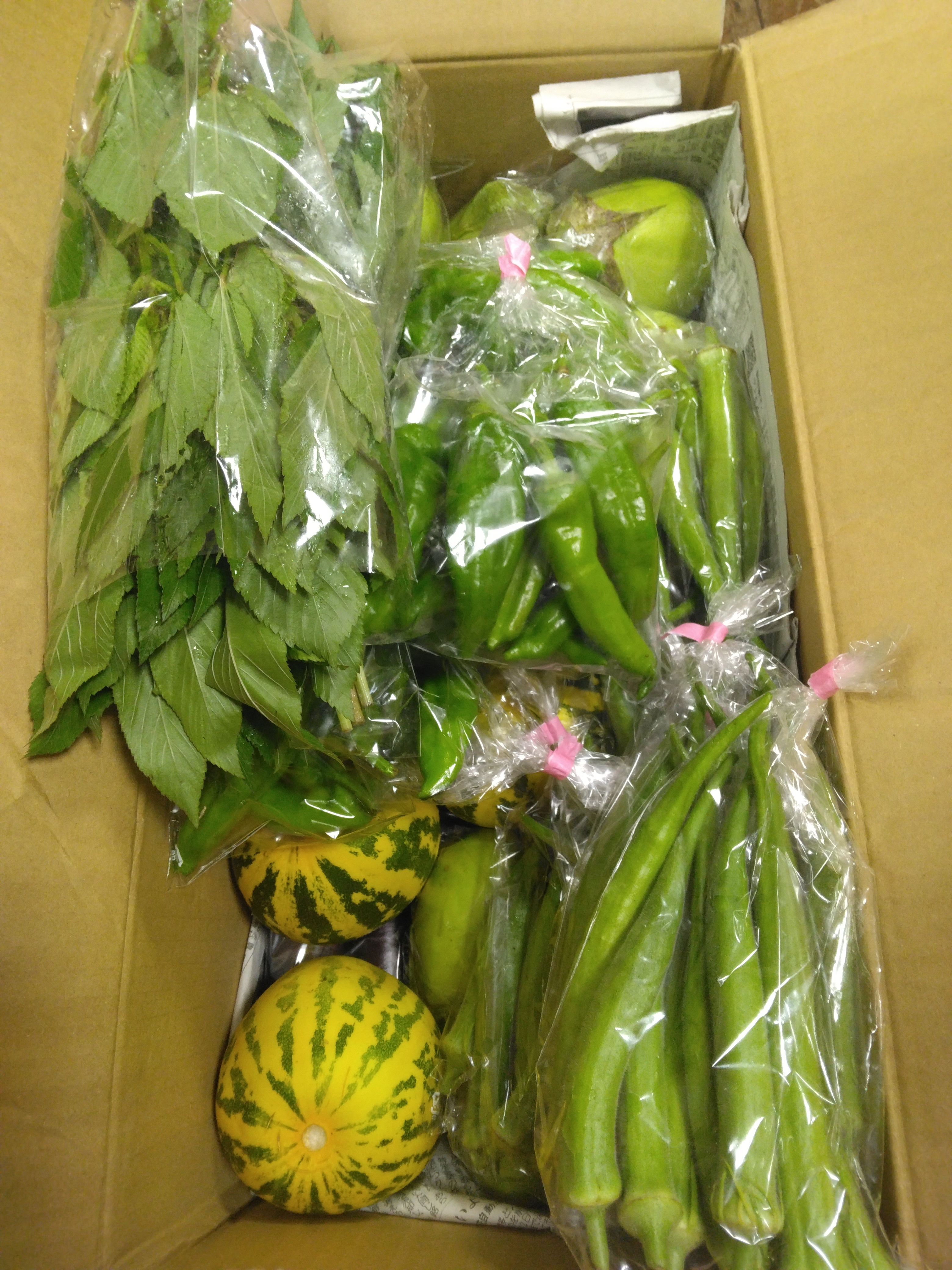 橋本さんから玉葱と頂くことの出来る野菜をお願いしたら、☆鶴首南瓜が入っておりました。